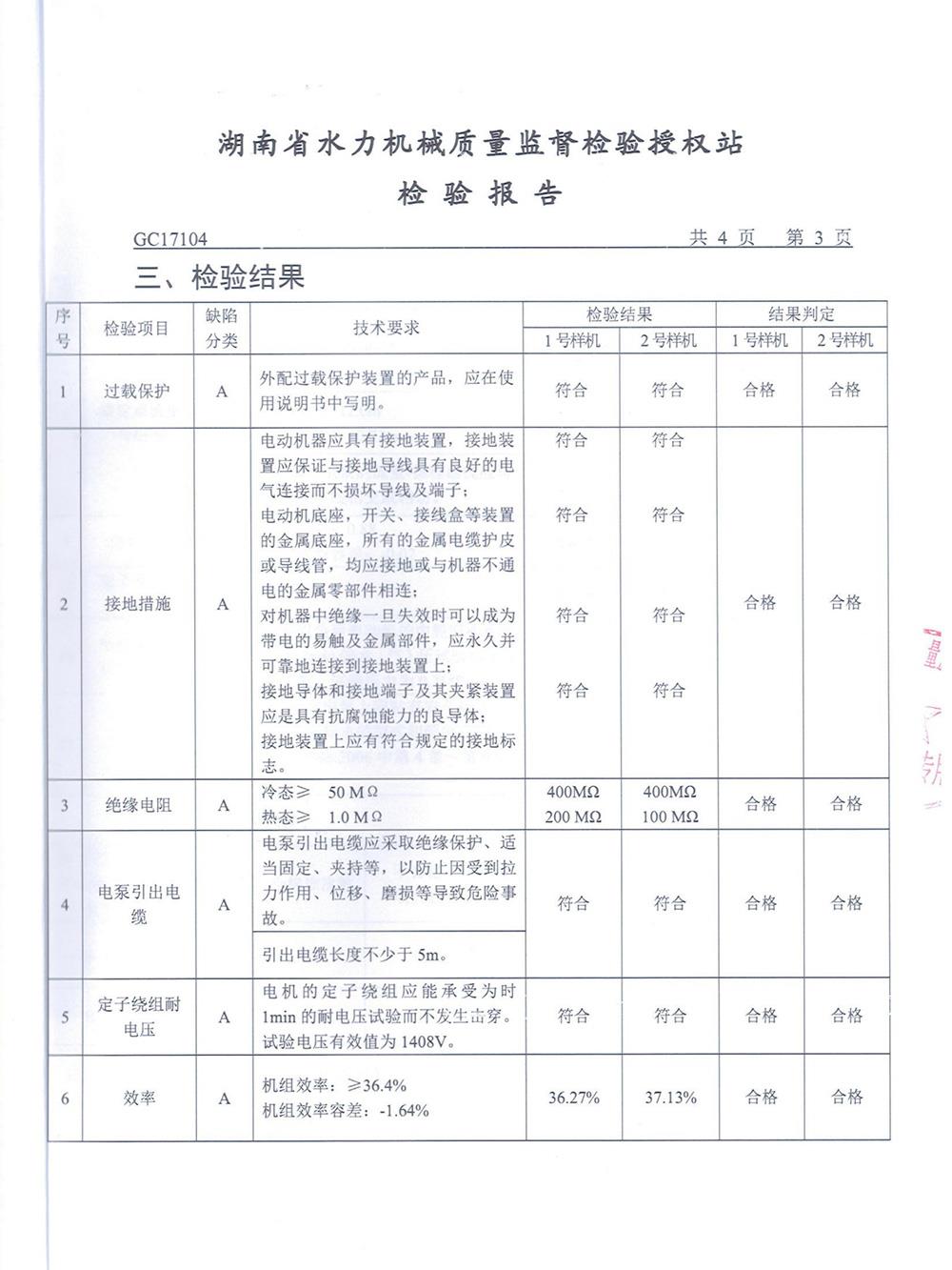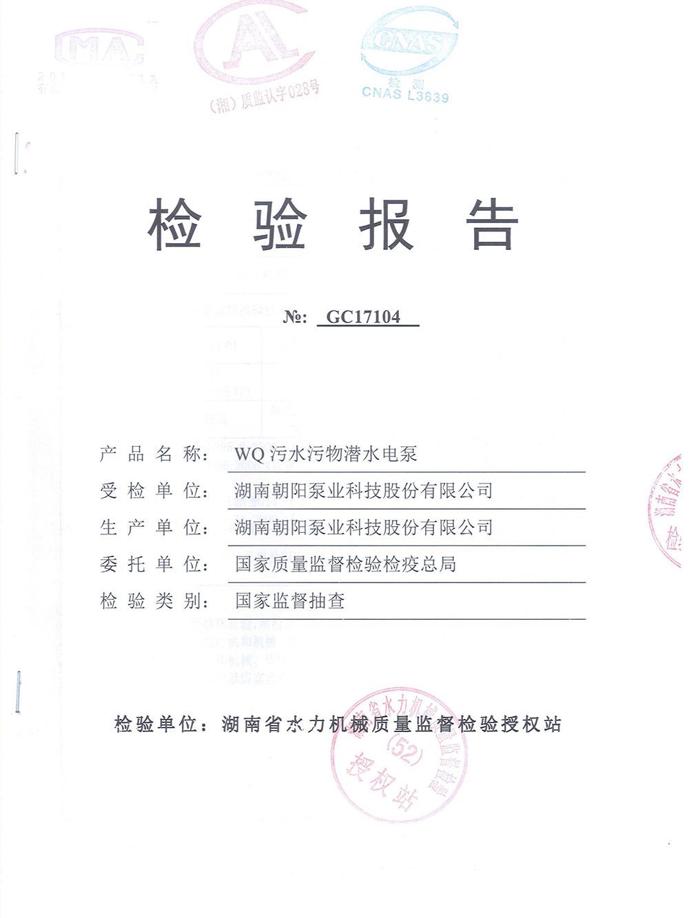 WQ污水污物潛水電泵檢測報告